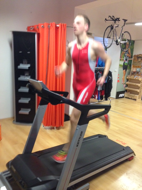 Věděl jsem ale, že je to akce tak trochu na psychiku (přelož si volně třeba „na palici“), protože se celá akce koná v jednom krásném holešovickém obchodě na pár metrech čtverečních. Plavání ve sklepě ve větší vaně s protiproudem, cyklistika na trenažéru a k tomu běh na páse naproti regálu s botama. Takže…kdo vydrží tohle, nic už ho neporazí!