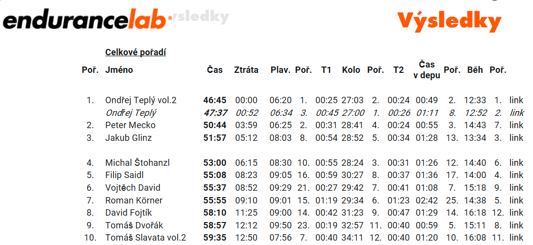 Shrnutí: Už po doběhu jsem věděl, že jsem splnil cíl a dokonce ho překonal o celou minutu. Celkový čas těsně pod 52 minut. To znamenalo průběžné třetí místo. Měl jsem radost! Trénink je na dobré cestě, můj přístup přináší nějaké ovoce a tak v něm můžu směle pokračovat dál.