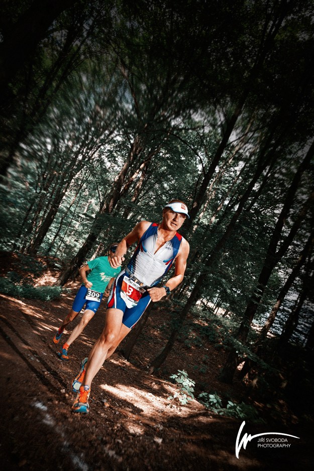 Já jsem si zaplaval docela oukej, jen po druhé bójce jsem měl problém s navigací, protože se to nějak roztrhalo a nikoho jsem neměl před sebou a na cíl jsem nějak nedohlídl 🙂 Ve vzduchu viselo napětí ohledně otázky, kolik mi Jirka ve vodě nadělil?! Minutu a dvacet šest vteřin. Plácám Peťu a ta frčí stahovat Součkovic náskok. Stejně jako všichni ostatní bojuje s nepříjemnou cyklistikou. První půlka s negativním převýšením, ale v nepříjemném větru. Druhá půlka do kopce a zase ten vítr…navíc jí spadne řetěz, ale dokáže se s tím nějak poprat a do druhého depa přiváží náskok (2,5 min, ale to samozřejmě nevíme…). Dobrá práce! Mimochodem 3. nejlepší kolo mezi holkama…