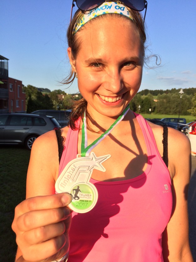 Sobotní fandění jsem si s Vaškem užil a Peťa úspěšně absolvovala náročnej sprint. Plavalo se bez neoprenů, na kole jeli krpály, které slabší jedinci museli vytlačit a pak běželi na pěkným sluníčku. Tentokrát bez kulhání a jiných zádrhelů…i když teda, když vlezla do vody, natrhla si kůži na palci o ostrý kámen. Ale žraloky krev naštěstí nepřilákala… :))