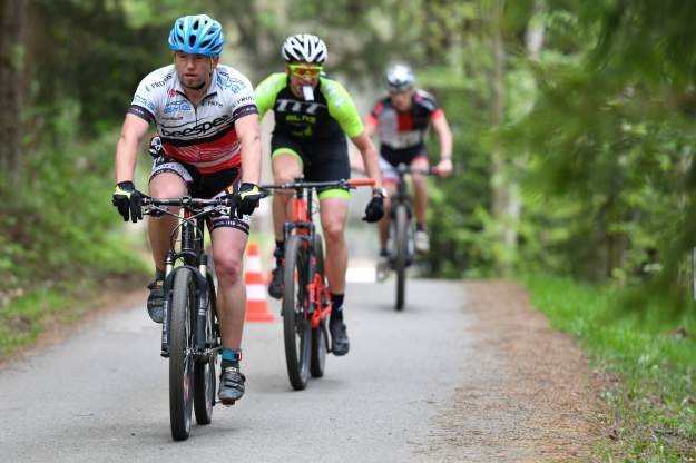 V druhém okruhu cyklistiky jsme si vyměňovali pořadí. Já jsem jedl, to mi jde. Kolega za mnou je pak na fotce níže z běhu. Neměl jsem na něj 🙂 Foto: Kachnafoto