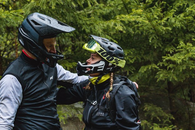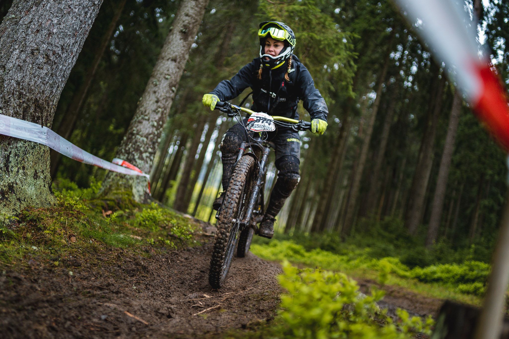 Každopádně RZty byly jedním slovem fakt fresh! Krása střídala nádheru, tuny a tuny hrabanky, že by se dala kydat. Do toho spooustu kamení a lesního porostu a samozřejmě nějaký to bláto nechybělo. To převážně v neděli, kdy teplota spadla někde mezi 5-10 stupňů a poprchávalo nebo regulérně pršelo nonstop 🙂 Nabalený jsme byli, co to šlo a stejně jsme byli durch. Co je určitě na místě zmínit je, že krásu a náročnost Blindura spatřuju v náročnosti transfer. Chceš krásnou RZtu? Třeba z vrcholu Luč? Ano, zařídíme. Ale nahoru po svejch a to si piš, že si to kolo nahoru budeš muset vynést třeba na zádech…! A taky, že jo. S Jančou jsem nestartoval společně, ale asi v půlce soboty jsme se potkali a pokračovali spolu. Vzhledem k nedělnímu počasí hodně, ale fakt hodně lidí odstoupilo. My ale nevzdáváme, nejsme z cukru a už jsme mohli razit společně. Janče jsem dělal takový garde, když jsem startoval za ní, aby měla dostatek času a nikdo na ni ze zadu netlačil. Závodění jsme moc nehrotili, ale bahno jsme si užívali plnými doušky (možná doslova…). Jednou za čas i holky jsou rády za prasata! 😃 Kdo by to byl tušil, že se mi těsně po RZ3 v neděli samovolně utrhne přehazka na půjčeném kole od Petra?