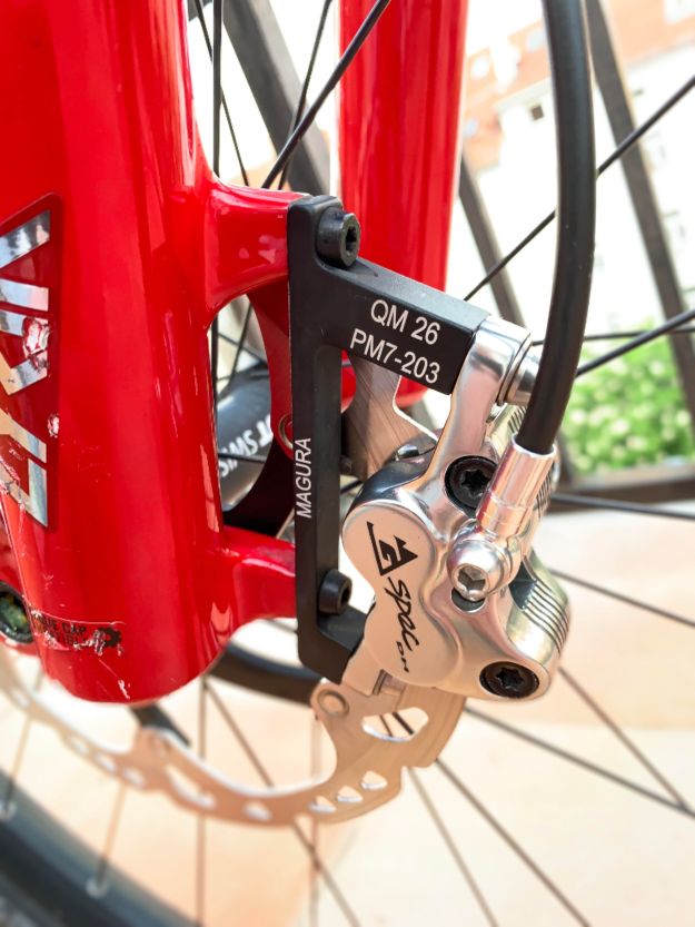 TRP G-Spec DH, kotouče Shimano XT, desky Galfer PRO (zelené) – viz. šílená nespolehlivost Magur MT5, možná špatný kus, ale jejich binární charakter byl na mokru už někdy trochu příliš. „Gwenovy“ TRPčka osazujou na top YT Tues modely, jsou spíš takový agro svým projevem – hodně dobře se dávkujou, ale kdo chce brzdit ostře, musí mačkat ostře 🙂 Od té doby brzdím méně, respektive méně přebržďuju. S deskama od Galferu – závodní zelený – lepší projev, malinko ostřejší. Kotouče XT jsou dobrý poměr cena/výkon a jako jedinou věc od Shimana je na kole snesu – jsou fakt hezký.